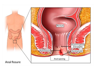 A fissure, specifically an anal fissure, is a small tear or crack in the lining of the anal canal. This condition often causes significant discomfort and pain, especially during and after bowel movements. Symptoms typically include sharp pain, itching, and sometimes bleeding. The tear is usually caused by trauma or irritation, such as passing hard stools, chronic constipation, or prolonged diarrhea.